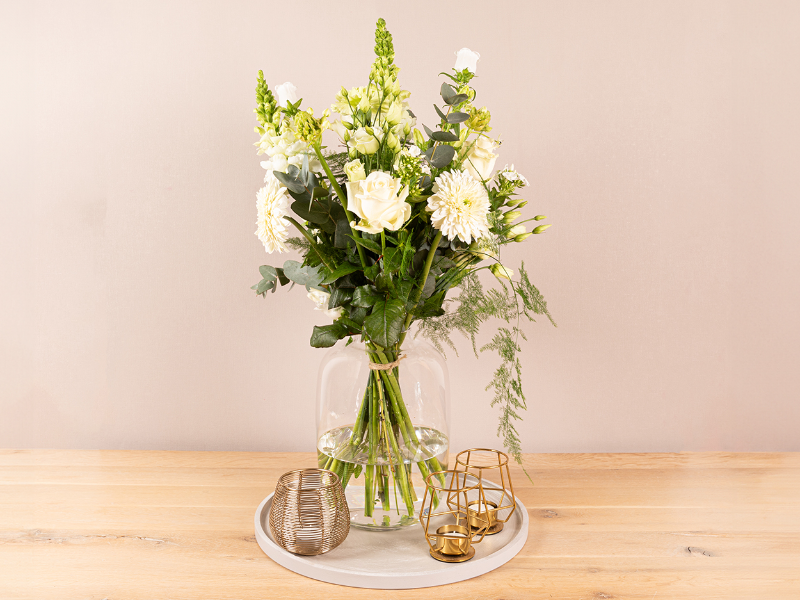 Bloemen zijn een natuurproduct, de geleverde boeketten kunnen afwijken. Wijzigingen en (druk)fouten voorbehouden.